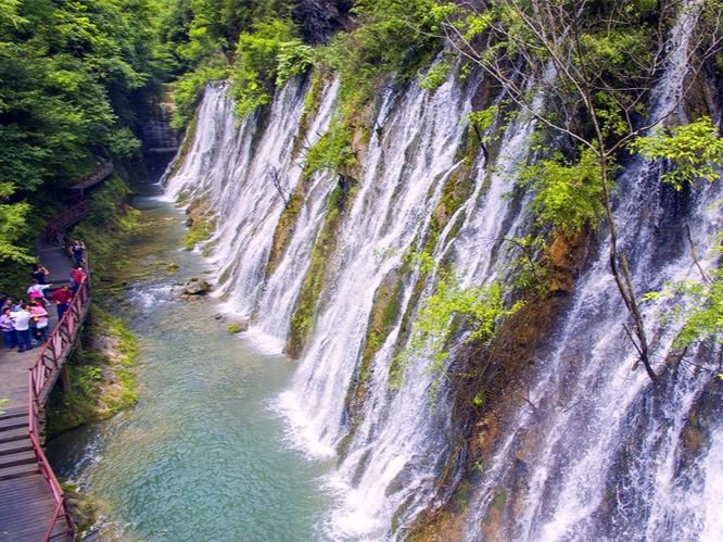 - 上午:游客中心→徒步棧道(落花湖→迎賓瀑→碧水潭)→玻璃棧道→鷹嘴崖