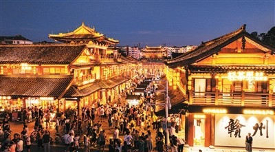 今年夏季,江西省贛州市推動消費場景創(chuàng)新,借助系列賽事活動打造“票根經(jīng)濟”,吸引八方游客前來旅游觀光,帶動消費市場持續(xù)火熱。圖為贛州市章貢區(qū)江南宋城歷史文化街區(qū)。