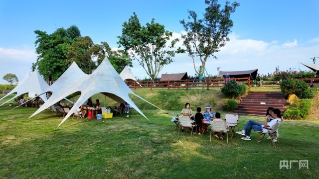 多元體驗讓假日消費延伸出更多維度。秋日艷陽下,孩子們在紅高粱地中盡情高歌;滿天星斗下,非遺傳承人揮舞的鐵花點亮夜空;星空影院前,游人圍坐煮茶觀影;露營基地內(nèi),燒烤的香氣飄滿整個田野……這座融合文化體驗與田園休閑的園區(qū),正成為人們的假日消費的新選擇。園區(qū)負(fù)責(zé)人陳霞介紹,園區(qū)內(nèi)專門設(shè)計了甲骨文識字、傳統(tǒng)文化研學(xué)、高粱采收等親子項目,讓游客在體驗中消費,在消費中感受文化。