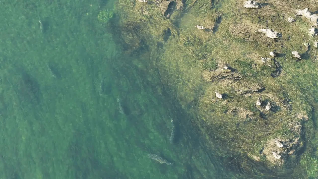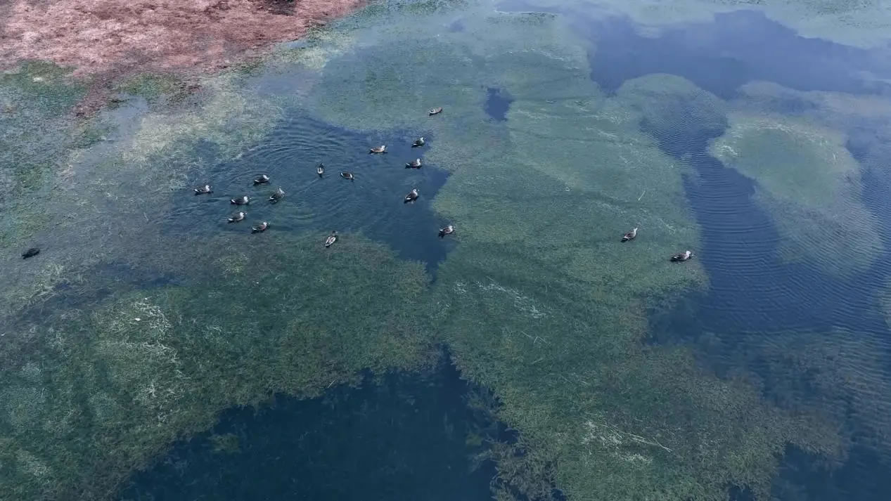 陽光灑落時,湖水清澈見底,魚兒在水中自在游弋,與岸邊景致構(gòu)成絕佳畫面。此外,黑翅長腳鷸也不時現(xiàn)身灘涂,為這幅生態(tài)圖景再添一抹靈動色彩。
