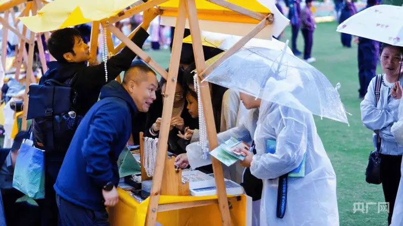 “饒”有好物非遺展與線下沉浸式互動體驗區(qū),不少游客前往打卡(央廣網(wǎng)記者 周蓓 攝)